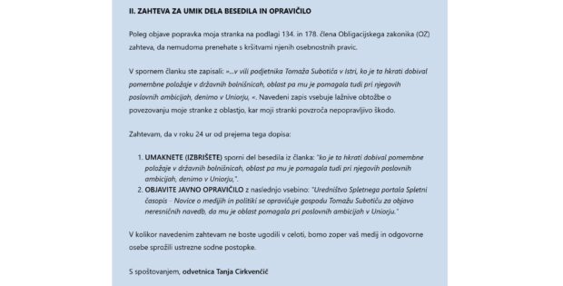 Tomaž Subotič zahteva popravek: Objavljam dopis odvetnice o Uniorju in Golobu