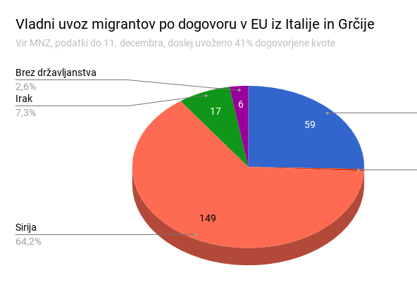 Skoraj 150 državljanov Sirije je iz Grčije v Slovenijo pripeljala še naša vlada. Statistika, komu iz Italije in Grčije je vlada po dogovorih na ravni EU od maja lani ponudili zatočišče, je takšna: