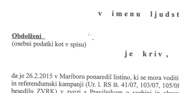 Izrek sodbe mi je sodišče poslalo anonimiziran. Javnost, ker je tak zakon sprejel državni zbor, ne sme izvedeti, da sta Berlič in Fištravec obsojena goljufije v kampanji.