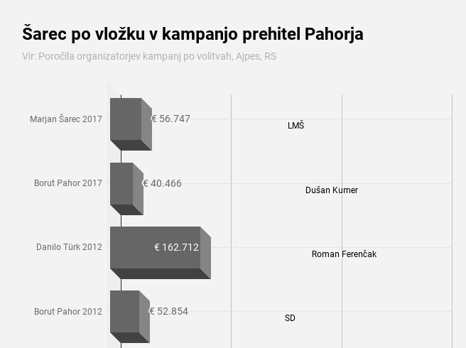 V poročilu o kampanji je Kralj zapisal, da je ves denar za kampanjo prispevala lokalna Lista Marjana Šarca. Posebej za kampanjo na volilni račun nihče ni prispeval niti centa. Po tem kriteriju je bil Šarec krepko slabši od Pahorja. Za Pahorja je Dušan Kumer prijavil, da je zbral 26.330 prostovoljnih prispevkov. Največ sta mu nakazala Sandi Češko in Stanislav Škrabec. Vsak po pet tisoč evrov. Imen drugih donatorjev Pahor ni razkril. Tistih, ki podarijo manj kot tisočaka, ni treba. A Šarčeva trditev v poročilu, da od velikodušnih državljanov ni zbral nič za kampanjo, ne pomeni nujno, da jih res ni. Stranke jih zbirajo tudi na rednih računih, dogajanja tam pa jim v poročilu o volitvah ni treba predstaviti in razkriti. Primerjava tokratnih kampanj kandidatov, ki sta bila v drugem krogu, s preteklimi, je takšna: