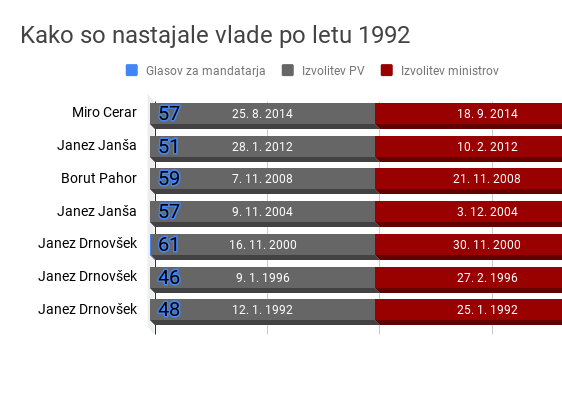 V zgodovini se je doslej enkrat samkrat zgodilo, da mandatar, ki ga je predlagal predsednik, ni bil izvoljen. Bilo je po predčasnih volitvah konec leta 2011, ko je predsednik Danilo Türk predlagal Zorana Jankovića, čeprav je bilo jasno, da ta nima večine. Zbral je 43 glasov. V preglednici je leta 2012 zato z datumom izvolitve in številom glasov naveden Janez Janša, ki je bil v drugem krogu izvoljen za mandatarja na predlog poslancev. Tokrat je, kot kaže, cilj Šarca, da bi bil izvoljen na način, ki ga je Janša začrtal, ko je propadel Janković, v katerega stranki je bil v preteklosti Šarec. V devetdesetih letih so bila odločanja o mandatarjih tesna. Drnovšek je leta 1996, ko je Kučan razmišljal najdaljši možni čas, komaj zbral 46 glasov. Pa še to mu je uspelo zaradi izstopa poslanca Cirila Pucka iz SKD, ker se ga je odločil podpreti. Pozneje je Pucko vstopil v LDS.