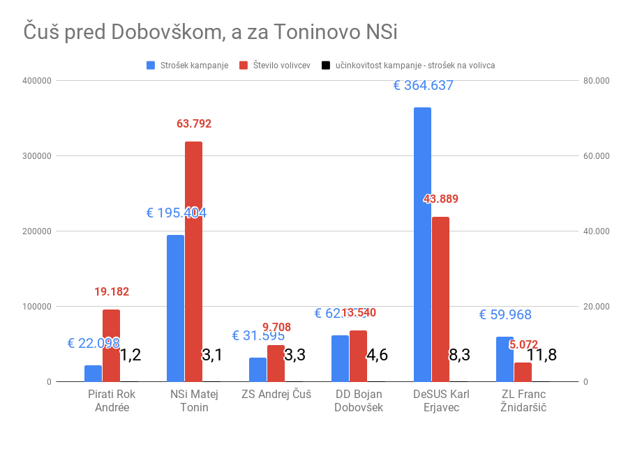 Vsote povračil so namreč majhne in nepomembne v primerjavi z dotacije, ki jih mesečno dobijo stranke s vsaj odstotkom volivcev. To mejo je Čušu uspelo prebiti. Država po reformi iz časov vlade Alenke Bratušek pri delitvi denarja privilegira najmanjše stranke. Tej reformi je – logično – takrat nasprotovala le velika SDS Janeza Janše proti kateri je bila uperjena. Na prejšnjih volitvah je bil Čuš izvoljen v DZ na listi SDS. A je med mandatom izstopil. Vse stroške kampanje si bo Čuš z dotacijami povrnil prej kot v pol leta. Podatki za vse stranke, ki so doslej poročale o stroških kampanj, o tem, koliko povračil dobijo, so takšni: