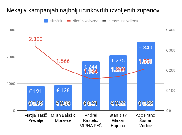 Nenavadno skromno kampanjo za lokalne volitve je zadnji teden prijavil Milan Balažic. Nekdanji veleposlanik v Avstraliji je objavil poročilo, da je za prepričevanje volivcev porabil vsega 127,7 evrov. S tem je v drugem krogu v Moravčah premagal dotedanjega župana iz SD Martina Rebolja. Poročilo Balažica je sumljivo skromne vrste. Še od teh 127,7 evrov bi naj večino, 88,8 evrov, porabil za poštne stroške. S tem se je uvrstil med župane, ki so bili izvoljeni brez protikandidatov ali ki so imeli takšno prednost, da kampanje sploh niso potrebovali. Spisek petih zelo varčnih županov po dosedanji poročilih o stroških kampanj je takšen: