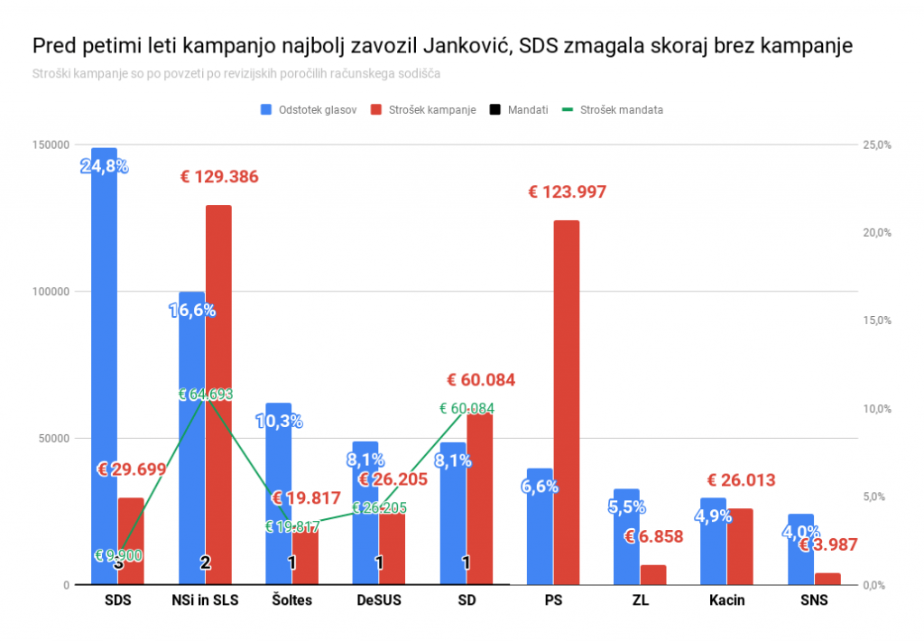 Med poražence je pred petimi leti sodila tudi SD, ki jo je takrat še vodil Igor Lukšič. V kampanjo so vložili krepko več denarja kot DeSUS Karla Erjavca in Verjamem Igorja Šoltesa, a sta jih ti stranki po rezultatu prešibali, da o koaliciji NSI in SLS in o SDS daleč spredaj niti ne govorim. Povrhu Lukšič z vrha liste ni bil izvoljen, prehitela ga je Fajonova, ki je letos nosilka liste.