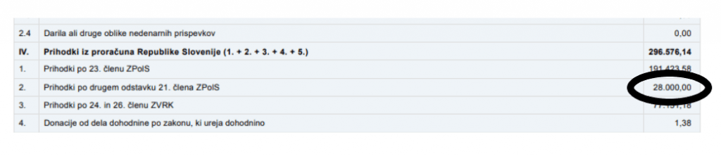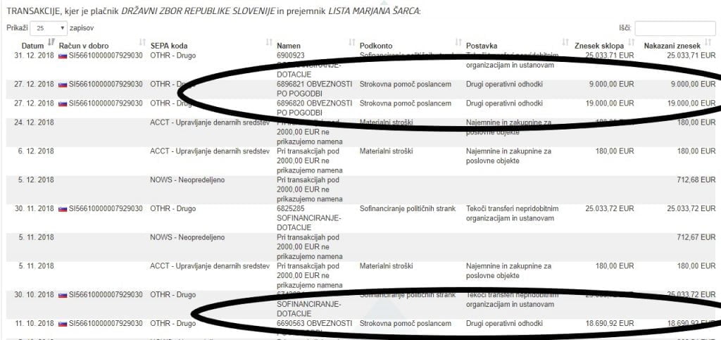 Napake se zgodijo. Podobne težave so tudi pri SNS Zmaga Jelinčiča, ki v finančnem poročilu trdi, da po 21. členu zakona o političnih strankah niso zbrali nič. Zato ga v preglednici ne navajam. A Erar pokaže nakazilo 31.12.2018 v višini 26.600 evrov v ta namen. Tako: