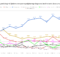 Sliko dogajanja po raziskavah javnega mnenja v zadnjih dveh mesecih, iz katere je razvidno tudi, kako Ninamedia za javno TV vsakič pokaže veliko prednost LMŠ pred SDS, kaže ta grafika: