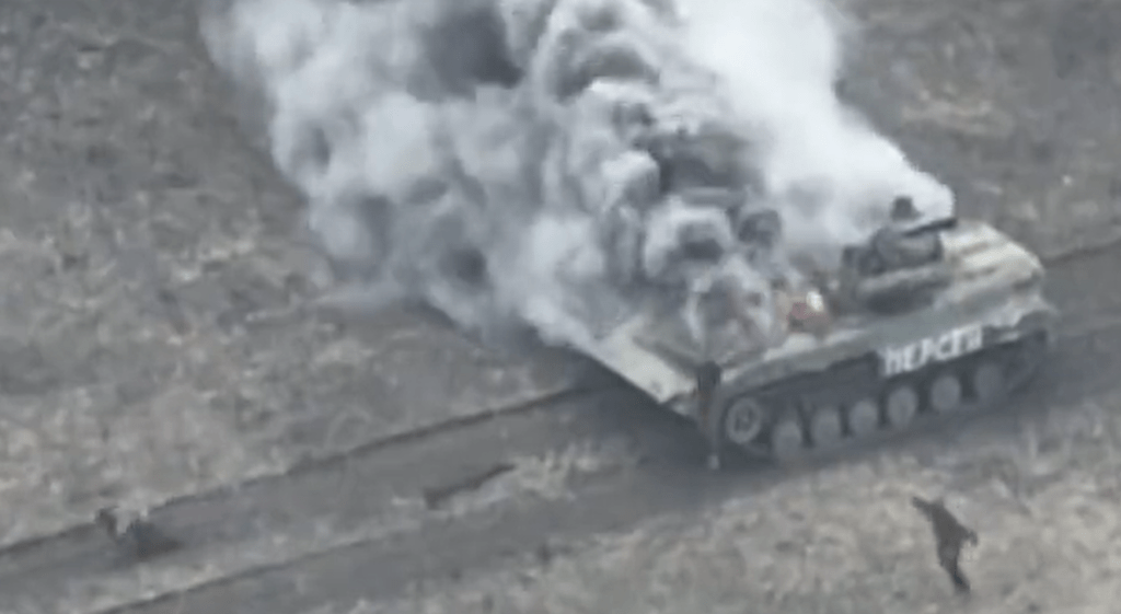 To kaže posnetek, kako je ukrajinska vojska z ročnimi protitankovskimi raketami Javelin ustavila in uničila kolono ruskih oklepnikov. Ob raketah kolono, tako se zdi, ustavljajo še protitankovske mine. Del oklepnikov se povsem razleti, kupole tankov končajo visoko v zraku. Gre verjetno za tanke T-80BV in pehotne oklepnike BMP-2M. Na posnetku, ki je zmontiran in lahko gre tudi za več dogodkov, je vidno, kako iz enega od zadetih oklepnikov trije člani posadke bežijo. V odzivih na te posnetke je precej vprašanj, zakaj je velika kolona oklepnikov na ravnici, kjer ni zavetja, brez podpore izvidnikov, ki bi jih opozorili na nevarnost, pa tudi brez sodelovanje topništva in letal, zapeljala v samomor.