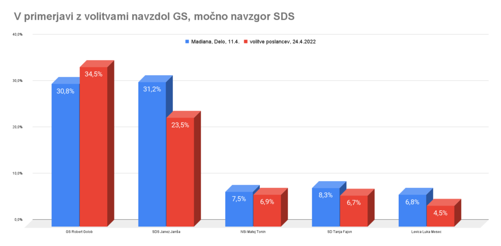Razlog za to, da se glasovi volivcev od Gibanja svoboda selijo k SDS je verjetno tudi, ker na volitvah drugi najuspešnejšo stranko vse ostale stranke poskušajo onemogočiti, da bi opravljala opozicijsko vlogo. Da bi onemogočili SDS, so vladne stranke vodenje obeh res pomembnih nadzornih komisij, za nadzor javnih financ in za nadzor obveščevalnih služb, dodelili veliko manjši NSi Mateja Tonina, ki je nenavadno kooperativna z vladajočimi, pozornost javnosti pa od škandaloznega ravnanja vladajočih poskuša odvrniti z izjavami, kako z Janšo v prihodnosti več ne bo sestavljala vlade. Sestavljanje vlade še kar nekaj časa ne bo dilema, prihodnje redne volitve bodo čez tri leta.
