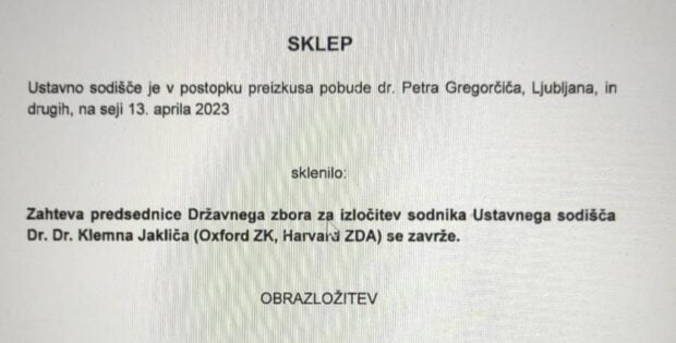 Klakočar Zupančičeva z izločanjem Jakliča propadla, izločena Kogovšek Šalamon