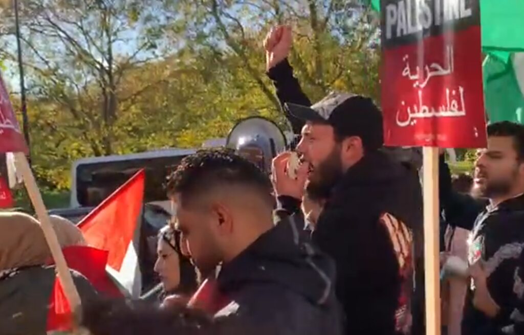 So pa tudi demonstranta, ki je nosil plakat z napisom »Osvobodite Gazo Hamasa« redarji prosili, da naj zapusti demonstracije, ker so omenjanje Hamasa razumeli kot provokacijo.