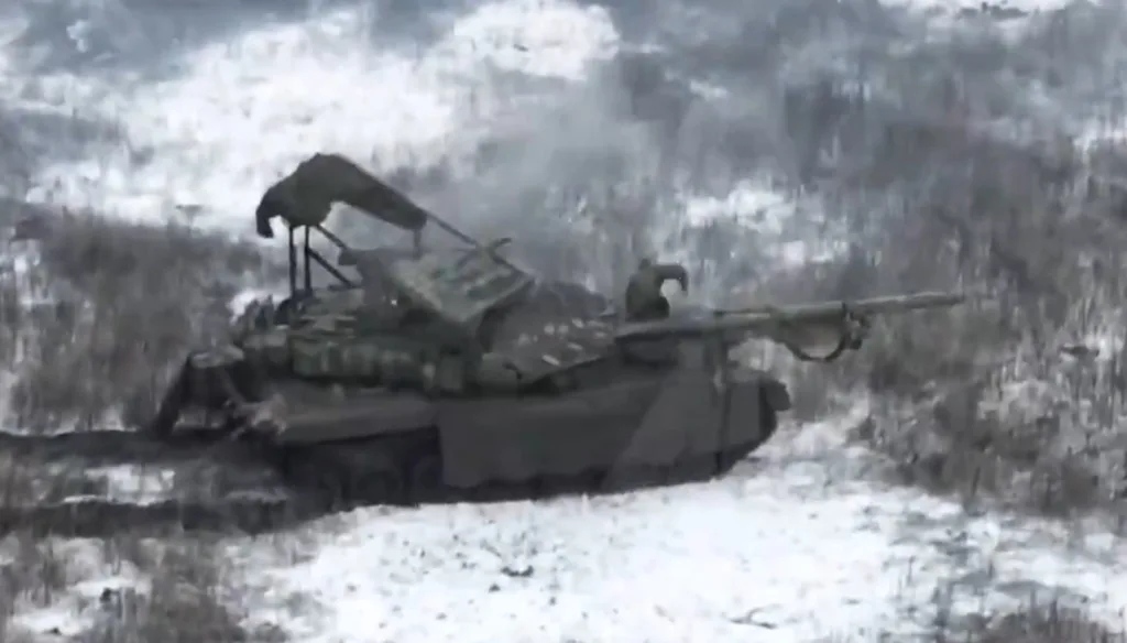 Z istega bojišča pa je tudi posnetek poškodbe na bojišču najboljšega ruskega tanka T-90M, ki ga je, kot kaže posnetek, zadel en sam dron. Precej nenavadno je, da je en sam dron onesposobil tank Proryv-3, ki je bil javnosti prvič predstavljen leta 2017 in ima med vsemi ruskimi tanki najmodernejši reaktivni oklep in tudi sicer obsežno zaščito. T-90M je, ko gre za ceno, tudi najdražji ruski oklepnik, z višjo ceno tudi od Terminatorja. Med razlagami je tudi, da je posadko zajela panika in so zbežali iz tanka, ki je še uporaben. Se je pa iz njega kadilo. Ni jasno ali zaradi eksplozivnega oklepa ali poškodbe v notranjosti.