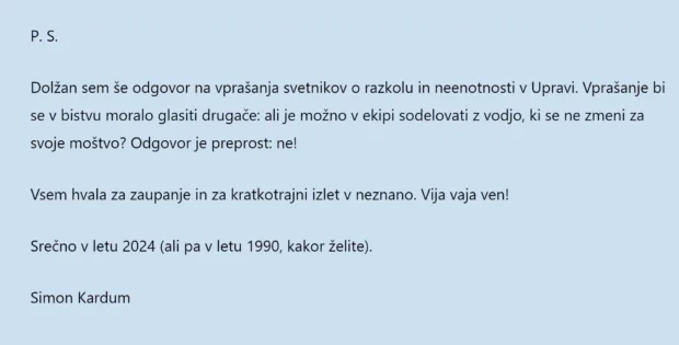 Celotna odstopna izjava Karduma, ki zanič dokumentov ne podpisuje.
