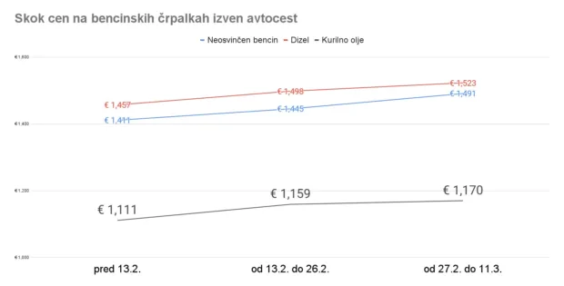 Dvig cen: Bencin skoraj izenačen z dizlom, na Hrvaškem je cenejši