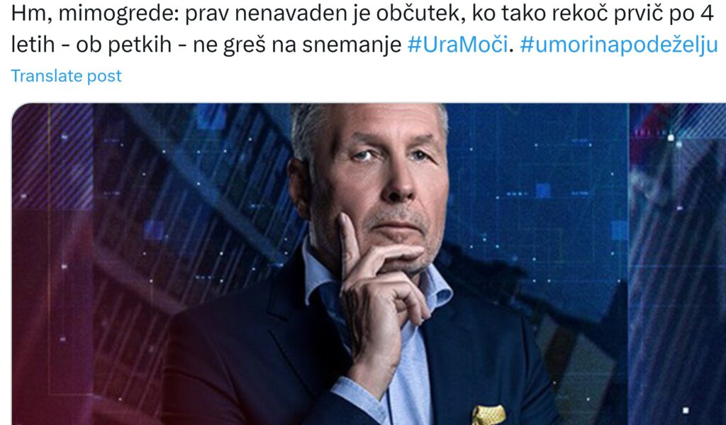 Po štirih letih danes prvič ne snemam Ure moči, je zjutraj opozoril Bojan Požar. Prejšnji teden mu niso objavili pogovora z Milošem Milovićem. Takoj je bila dilema, ali ne gre v ozadju za večje dogajanje, v katerega so vpletene tudi vladne stranke, ki poskušajo že dalj časa onemogočiti in utišati Bojana Požarja in to tudi s posebno preiskovalno komisijo v parlamentu, s katero preiskujejo medije in novinarje, ki jih ne obvladujejo. Na Planet TV so intervju najprej napovedovali, urednik informativnega programa Uroš Urbanija ga je tudi reklamirali s sporočili na X. Urbaniji ni odgovorni urednik Ure Moči. To je Pavel Stantchev.