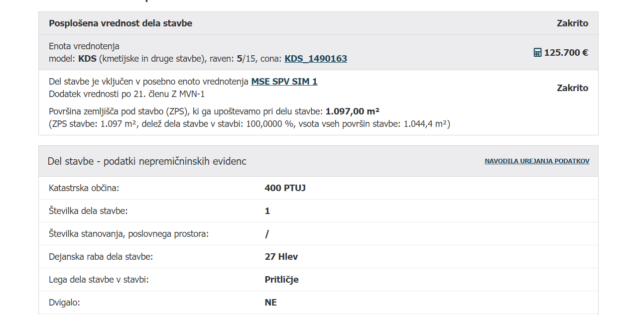 V državni aplikaciji, ki poskusno pokaže vrednosti nepremičnin, ne morete ugotoviti, koliko so vredni kolektorji Star Solarja, ki so v lasti Robert Goloba na Ptuju.