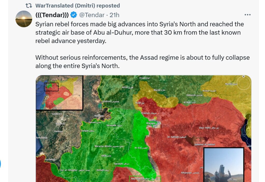 Additionally, forces of Hayat Tahrir al-Sham have entered Hama, advancing approximately 60 kilometers… pic.twitter.com/aVz2zZ7KRJ