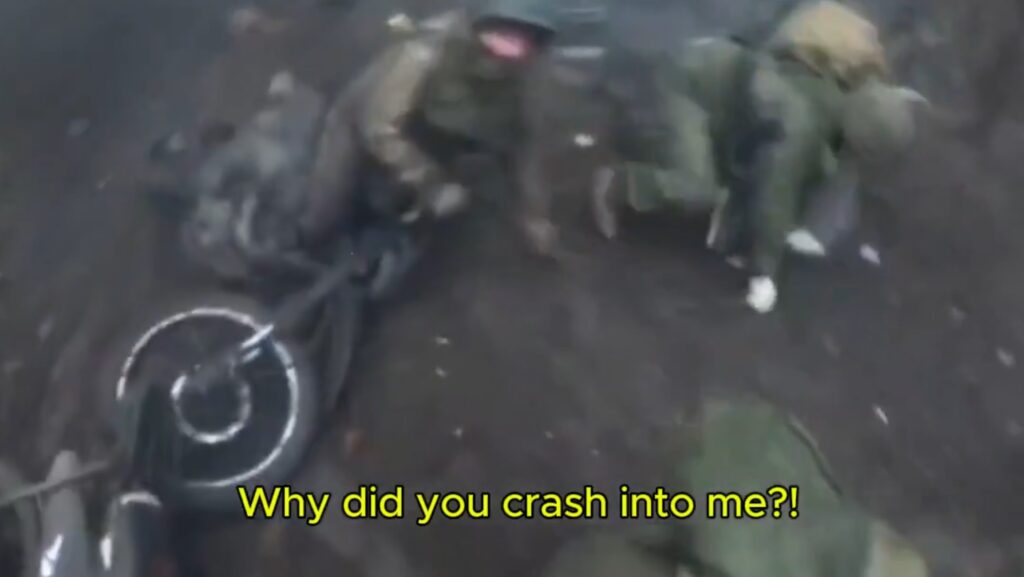 Na daljšem posnetku si je mogoče ogledati izkušnjo ruskih vojakov, ki kaže, da resna oklepna vozila, ki jih naše vlade že dve desetletji niso sposobne kupiti vojski, še niso povsem preteklost in da jih terenski motocikli ali konji težko nadomestijo, ko gre za prevoz vojakov na kraje spopadov ali spopade same. Raba bližnjic se, kot kaže posnetek, lahko konča katastrofično.