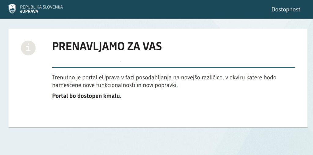 Sistem je začel ponovno delovati čez približno pol ure in je zdaj dostopen.