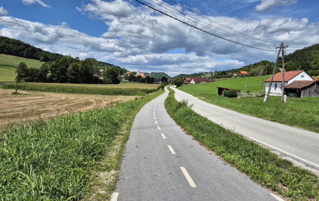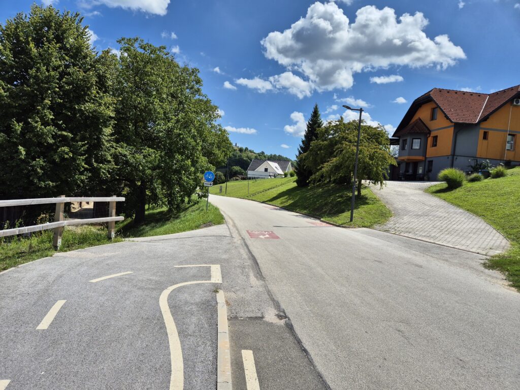 Nove kolesarske steze so na poti proti Šentilju, kot tudi drugod v teh krajih, narejene na način, ki je, tako se vsaj zdi, najmanj stal. Praviloma se končajo, ko se začne resno naselje. Verjetno, ker so tam zemljišča draga in bi stalo preveč. Ceneje in bolj preprosto je bilo na delih, kjer so le polja in travniki. Tako se konča ločena kolesarska steza, ko se začne naselje:
