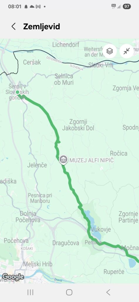 In dobre so kolesarske poti vse do Šentilja. Tudi za družine z otroci. Glede na kraje tam okoli ni čudno, kako poje. Niso pa tako dobre kolesarske poti pred tem med gostilno Šiker in Lenartom, kjer je edina izbira, ki je brez večjih vzponov, nekdanja glavna cesta med Mariborom in Lenartom. Samsungova telefonska aplikacija za športne aktivnosti je kolesarsko pot z Alfijem Nipičem narisala tako: