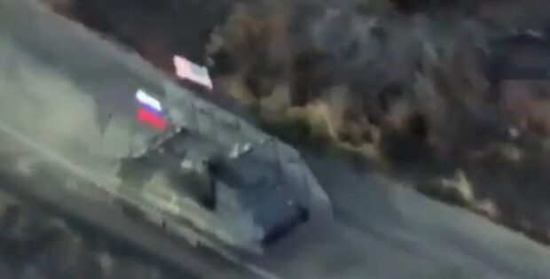 Oklepnik z rusko in ameriško zastavo ni preživel