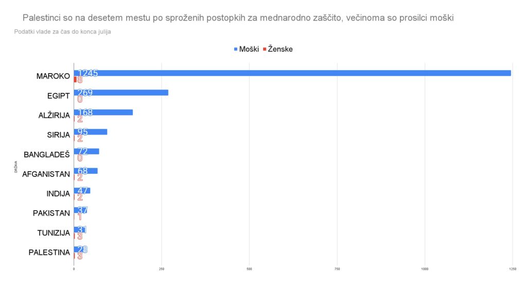 Več podatkov je v bazi o prosilcih za mednarodno zaščito. Skoraj vsi nezakoniti migranti vsaj napovedo prošnjo za zaščito, ker jih v tem primeru naša država ne vrača na Hrvaško in se lahko po tem relativno svobodno odpeljejo proti Italiji ali Avstriji, kar je praviloma njihov cilj. Zaščite pri nas pa si dejansko ne želijo. Azilni sistem le zlorabijo. Do konca julija je bilo skupaj dejansko sproženih 2.378 postopkov za zaščito. Po številu je 31 Palestincev v tej bazi podatkov letos na desetem mestu.