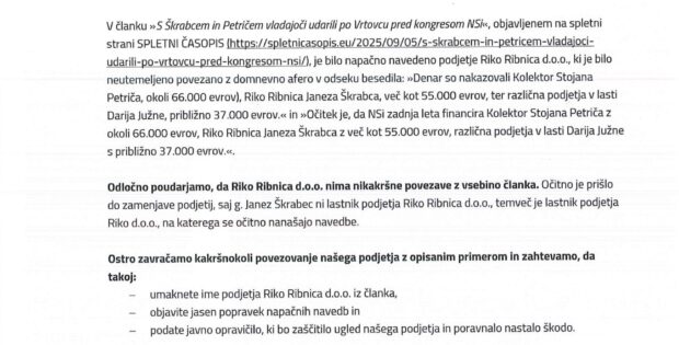 Riko Ribnica ni Škrabčev Riko, zanikajo tudi nakazilo