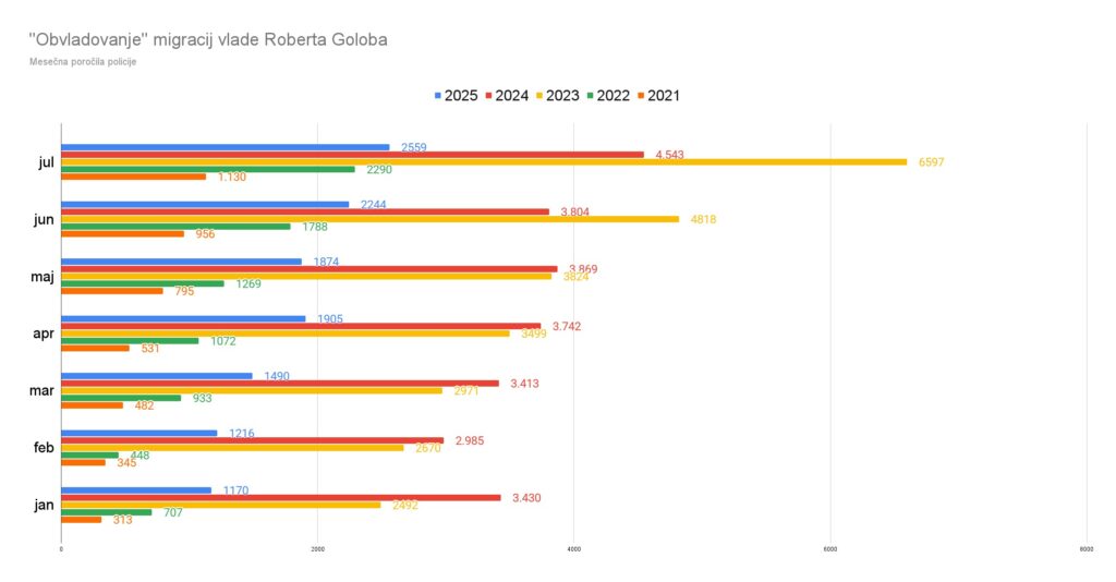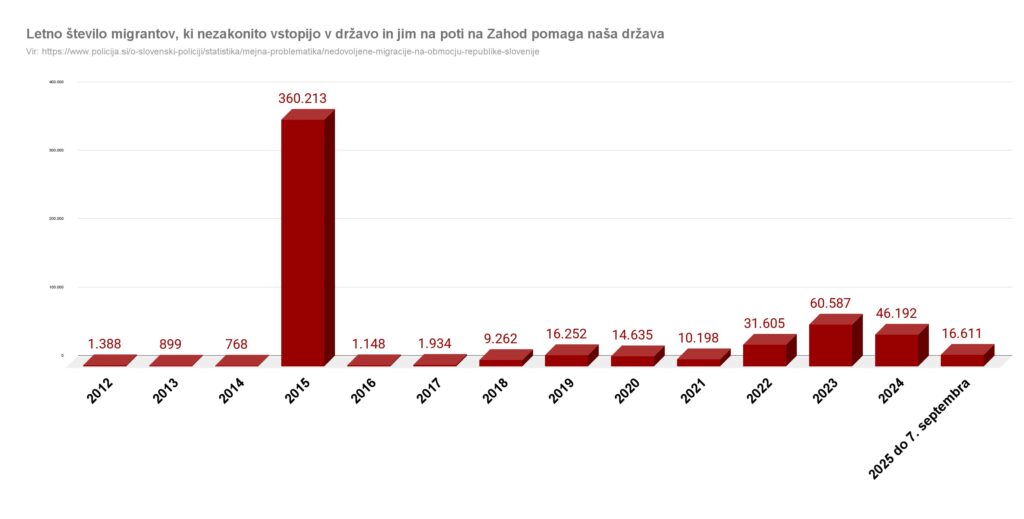 “Letos do 7. septembra 2025 smo obravnavali 16.611 nezakonitih prehodov državne meje, kar je za polovico (49,5 %) manj v primerjavi z enakim obdobjem lani.” To so v sporočilu za javnost, ki so ga naslovili “Obvladujemo nezakonite migracije – sporočilo za javnost” danes javnost obvestili iz policije. Sporočilo je nenavadno, ker običajno javnost obveščajo z mesečnimi poročili, ki ga za čas do konca avgusta še niso objavili. Kot kaže pa imajo podatke tudi že za del septembra. Javnost pa ne.