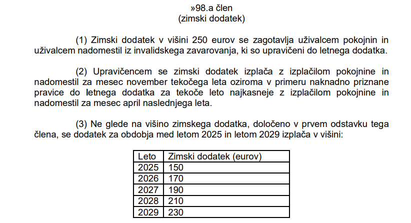 Člen, ki določa začetek uporabe novosti in hitro izplačilo zimskega dodatka, po tem, ko zakon obvelja 15 dni po objavi v uradnem listu, je takšen: