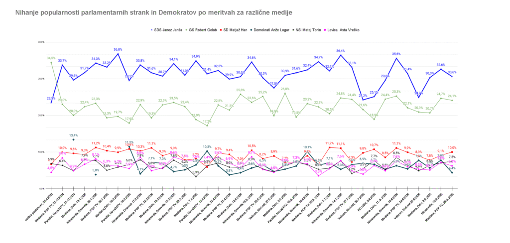 Pregled daljšega obdobja kaže, da nismo priča izjemnim nihanjem, edina res velika sprememba v primerjavi s prejšnjimi volitvami je, da je SDS že dolgo daleč pred Svobodo. SD pa pred NSi. Pa v parlament bi prišlo še nekaj strank, ki na zadnjih volitvah niso. Tokrat dve.