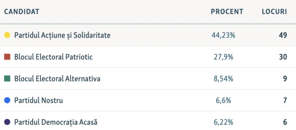Stranka akcije in solidarnosti (PAS) Sandujeve je na volitvah zbrala skoraj 45 odstotkov glasov, blok treh strank, ki so blizu Moskvi, pa slabih 28 odstotkov. V sedežih je PAS v parlamentu, v katerem je 101 poslanec, zbrala najmanj 49 sedežev. Ni pa mogoče izključiti, da se bo število še povečala ob preštevanju še zadnjih glasovnic.