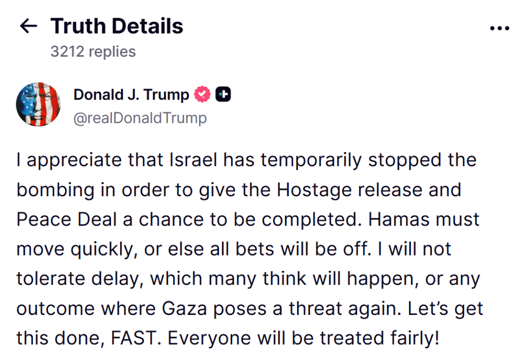 Tako jih je k izpustitvi talcev in razorožitvi včeraj pozval Trump.