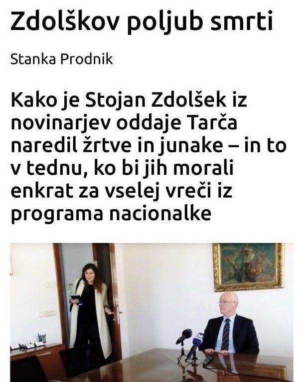 Zdolšek je “napačno” novinarko, in s tem uredništvo, nagnal. Javno pa je pojasnil, da je njegov zasebni biznis, komu daje izjavo za šefa vlade. In s tem opisal, da sta POP TV in TV SLO zasebni posel. Drugi k njemu nimajo vstopa. In jih lahko kadarkoli nažene. Veliki šef. Za Roberta Goloba.