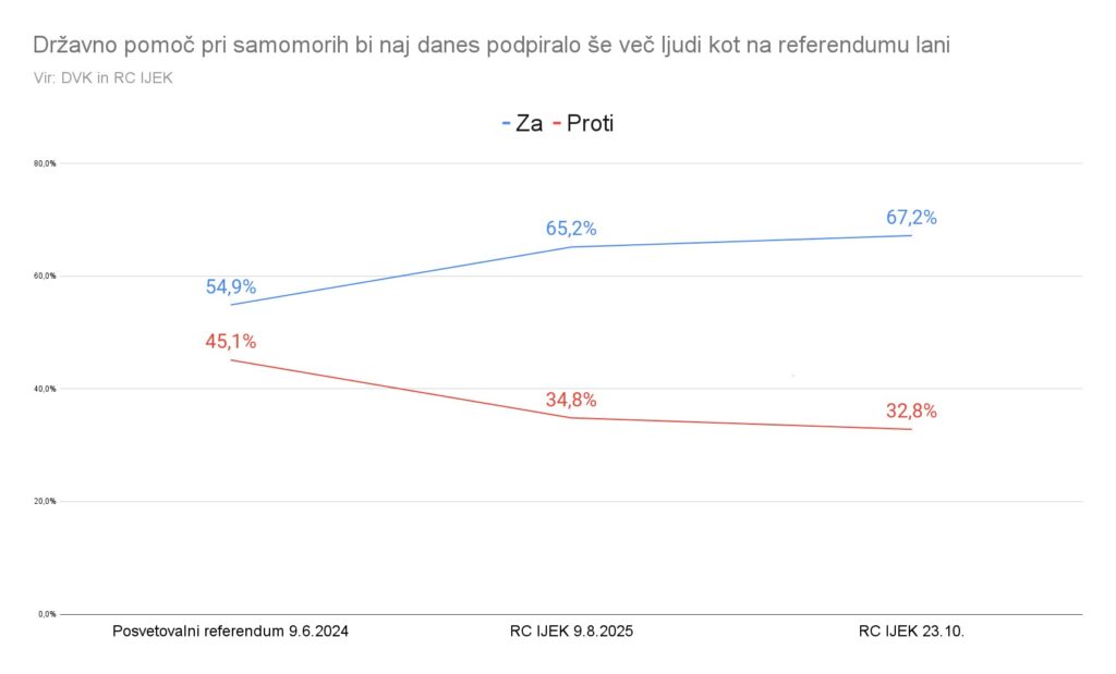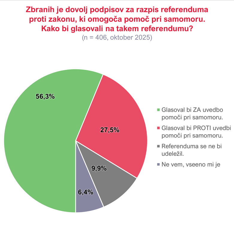 Na referendumu čez mesec dni bodo odločno zmagali zagovorniki državne izvedbe samomorov. Obsežen birokratski aparat, v katerem bodo tudi zdravniki, ki bo odločal, kdo sme storiti samomor in pomagal pri izvedbi, podpira več volivcev kot ga je avgusta in več kot na posvetovalnem referendumu, ali to uzakonjati, ki je bil lani junija, ko so bile tudi evropske volitve.