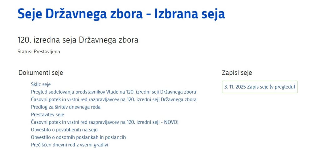 Takšen je bil dnevni red seje sklicane mimo poslovnika, ker je bila že pred tem sklicana 120 izredna seja, ki bi morala biti celo prej. A so jo pozneje preložili.