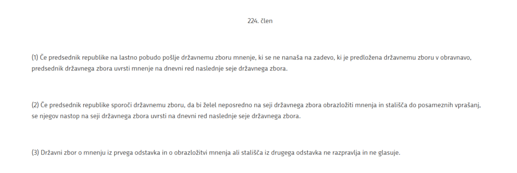 Sejo parlamenta je bila za Pirc Musarjevo sklicana mimo določb poslovnika, ker ni bila na prvi naslednji seji. Tako pravi poslovnik: