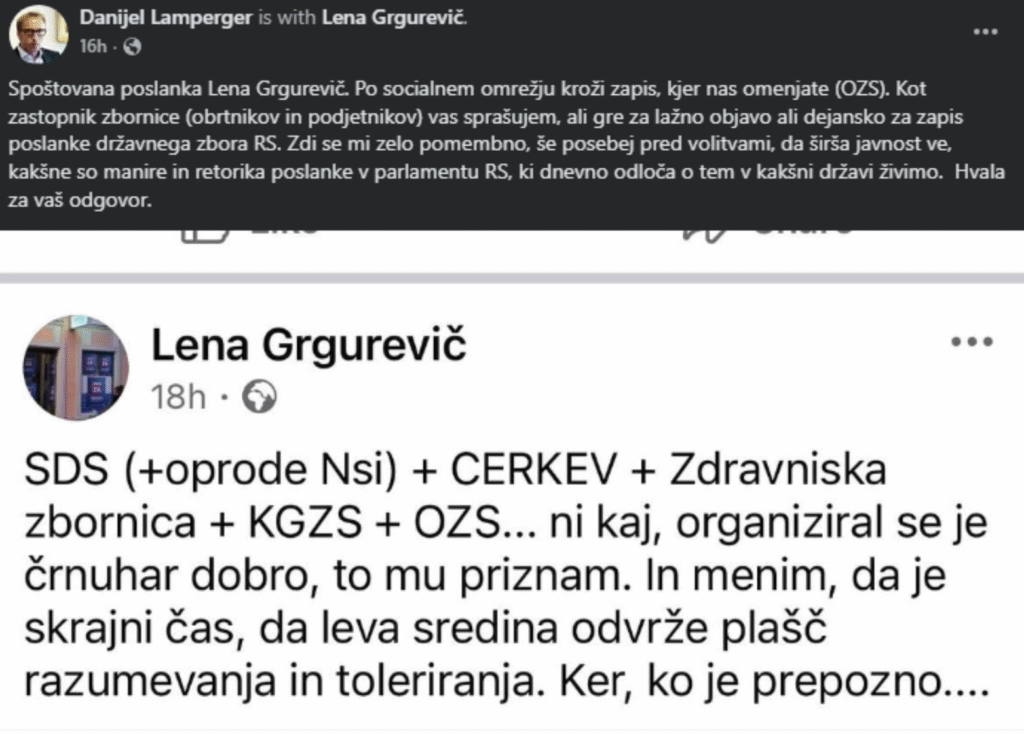 Že pred zdravniško zbornico je pojasnilo od poslanke, ali je res zapisala takšno trditev ali pa gre za lažno objavo, prosil Danijel Lamperger. Tako: