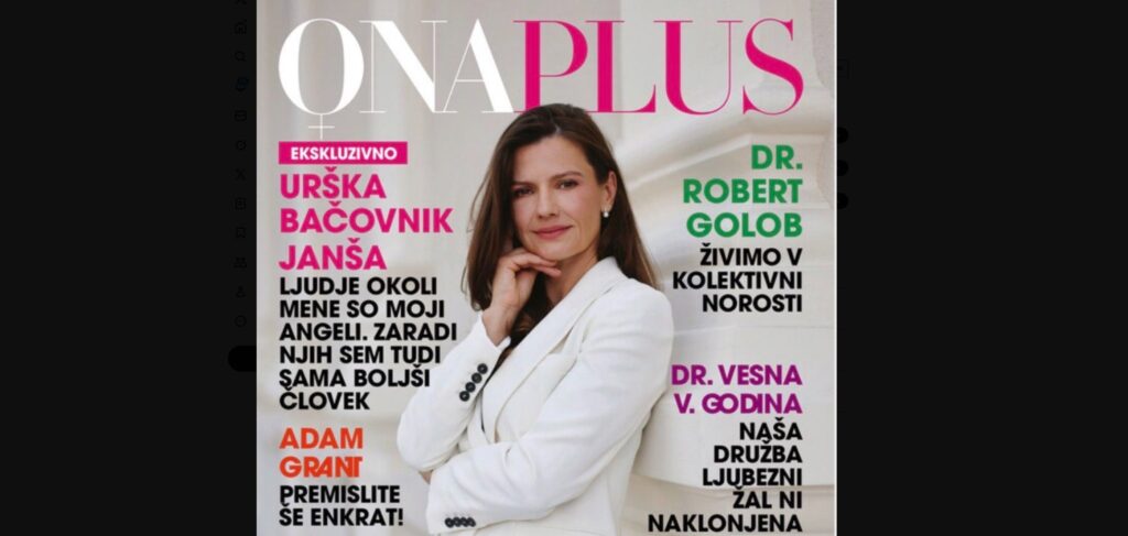 “Po kakih 13 letih so spet prepričali Urško Bačovnik, da posname intervju za prilogo Dela Onaplus z naslovnico. Dober intervju. Ko je bila revija že v tisku, so ji sporočili, da so vanjo urgentno dodali še pogovor s PV Robertom Golobom. Ker da je menda nekdo drug odpovedal. Mora biti res hudo, da se aktualni predsednik vlade skuša promovirati celo preko žene predsednika opozicijske stranke. Dobili smo še zadnji dokaz, da je panika pri levičarjih epohalna in da bodo v sli po oblasti za vsako ceno zlorabili vse, kar se da.”