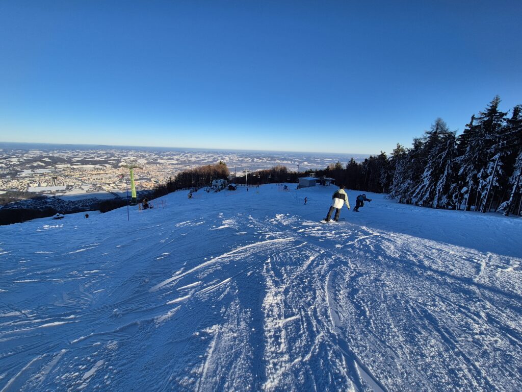 Kaj veliko izbire na mariborskem Pohorju po tem ni bilo. Ob Stolpu za začetnike, še podobna dvosedežnica Sleme nekaj nižje, ki je podobno za začetnike. Nekoliko modernejša štirisedežnica Poštela pa še ni delovala. Ni še bilo dovolj hladno, da bi snežni topovi nižje naredili čudež, bi lahko sklepali. Je pa bilo sonce in lep razgled. In veliko deskarjev. Pa Maribor nekaj nižje.