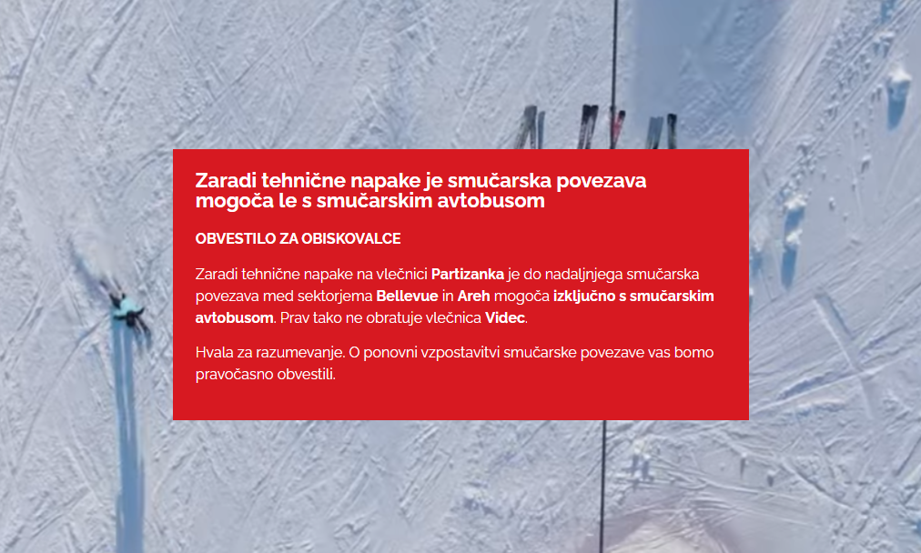 Ker sem bil letos prvič na smučkah, sem šel najprej po tej progi navzdol. Da dobim občutek, kako je sploh na snegu. Iz Stolpa gre pot na Videc na črno progo, ki pa ni za začetnike. Še posebej spodnji del je prepad. Včeraj je bil zaprt. Pred najbolj kaskaderskim delom je mogoče skozi gozd zaviti na drugo stran, kjer je manj zahtevna proga, ki pa tudi ni za začetnike. A ker je bil sneg super, je bilo oboje včeraj velik užitek. Ustavilo pa se je na vlečnici, ki je enaka kot pred več kot štirimi desetletji, ko sem bil še v osnovni šoli. Predpotopna. Ustavilo se je dobesedno. Da se vlečnica ustavi za kratek čas, je običajno. Težave pri vstopanju ali izstopanju. A ni šlo za nekaj deset sekund. In minuto. Ali deset minut. Veliko dlje je stalo. Navzdol so z motornimi sanmi pridrveli možje pomagat odpravljati težavo. Celo več sani je prihrumelo. Vrsta spodaj pa je bila vse večja. Prihajali so tudi že smučarji, ki so se vračali iz Areha. Imel sem srečo, ker sem bil na vlečnici bolj na začetku, to je na delu, ki je položen. Tisti, ki so obstali v hudi strmini malo naprej, so trpeli. Številni so sčasoma obupali, zapustili sidra in odšli navzgor peš. Kar je podvig. Vem, ker sem, ko sem bil desetletja mlajši, nekajkrat zamudil pri vračanju iz Areha in vlečnica več ni delovala. Priti navzgor po celem dnevu smučanja in to s smučmi in smučarskimi čevlji, je podvig. Sneg se vdira in drsi. Skoraj alpinizem. Presenetljivo je prastara vlečnica sčasoma le spet začela delovati in me je mimo nesrečnežev, ki so izpustili sidra in prišli že daleč navzgor, med njimi tudi otroci, pripeljala povsem na vrh. Tam sem se odločil, da ne grem naprej na Partizanko, da bi preko nje prišel do modernejših sedežnic in žičnic na Arehu. Partizanka je podobno prastara kot Videc in obe sta zadnji leti redko delovali, ker ni bilo snega. Ko se spet požene, so lahko težave. Pot na Areh bi pomenila, da bi se moral tudi vrniti in če je Videc že zdaj štrajkal, bi lahko bilo tvegano. Za kaskaderje in hribolazce. Sčasoma se je pokazalo, da dobesedno. Partizanka je, sem izvedel na progah nižje, povsem crknila. Menda bi naj snelo vlečno vrh, kar je povzročilo toliko škode, da hitro popravilo ni bilo mogoče. Obstalo bi naj 70 smučarjev. Na forumu Smučišča.net je bil pozneje opis razpleta tak: “Na Partizanki se odvija organiziran pohod od spodnje do zgornje postaje vlečnice.” Naporno. Osebno pa nisem preveril, ker na srečo nisem bil tam. V nedeljo so težavo na Pohorju tudi uradno priznali tako: