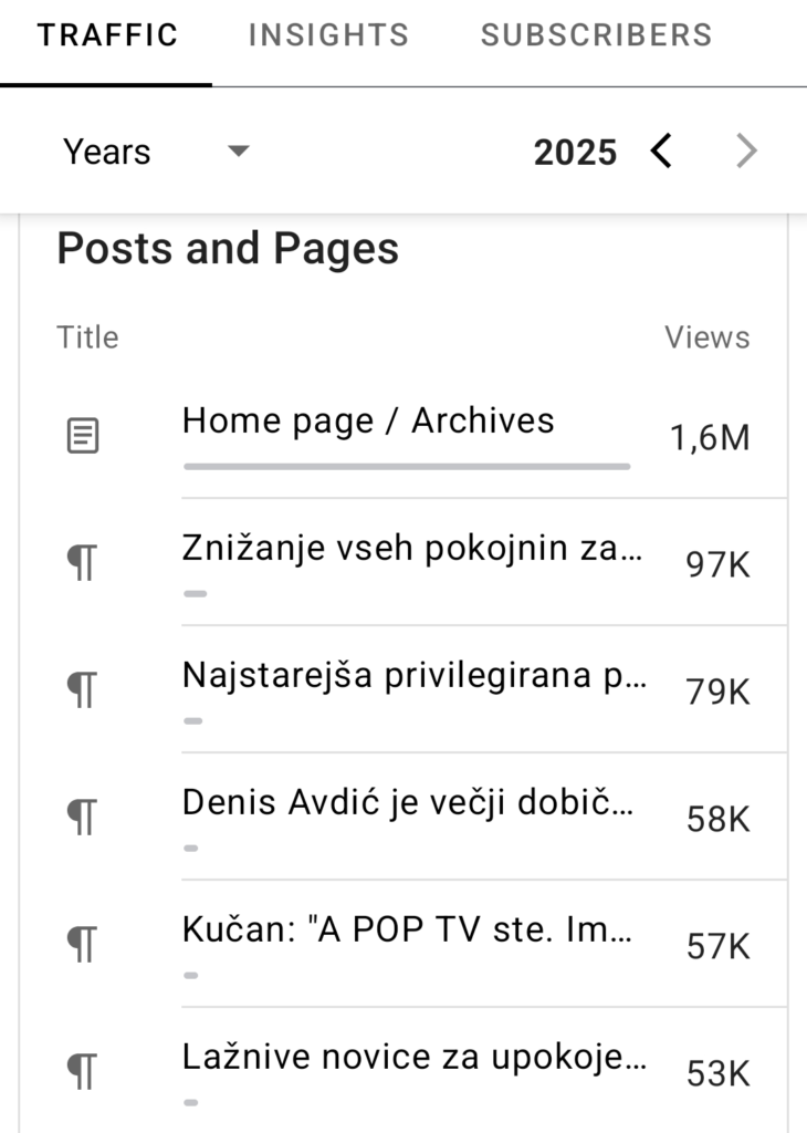 Spisek najbolj branih člankov s pomočjo Jetpack analitike, je bil lani takšen.