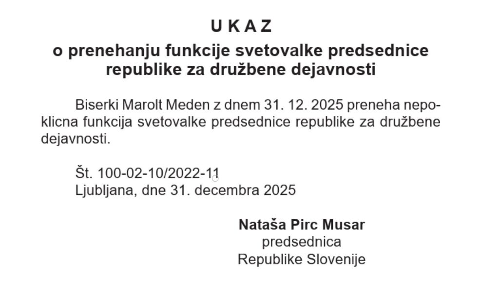 Pri predsednici republike, ki pravkar podpisuje odlok o razpisu volitev, ki bodo 22. marca, so povedali, da so se razšli sporazumno, opozorili so, da je Marolt Medenova delo opravljala volontersko, dogodek pa ni posledica referendumskega poloma.