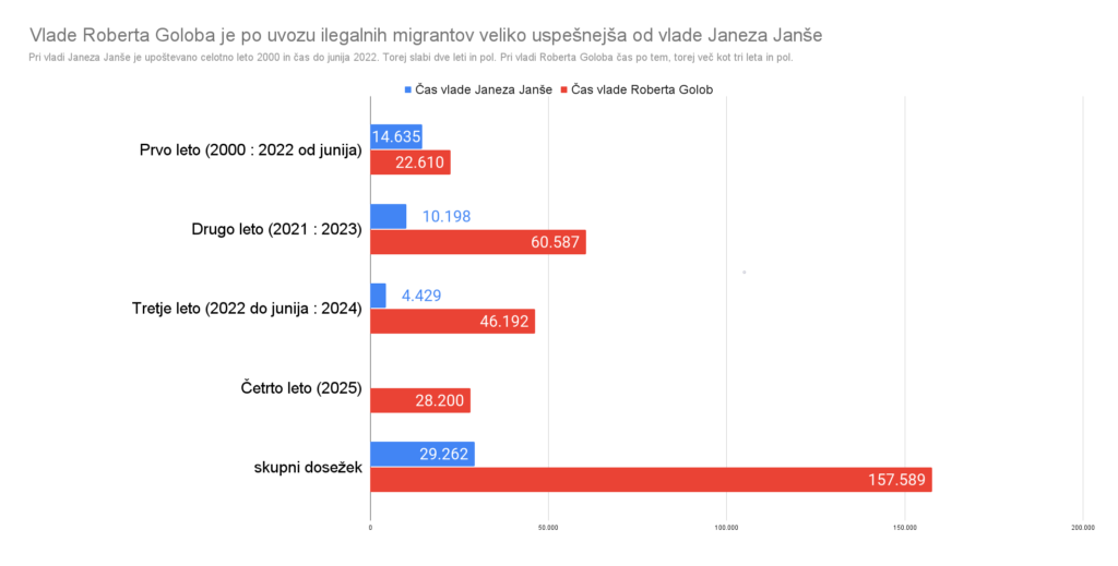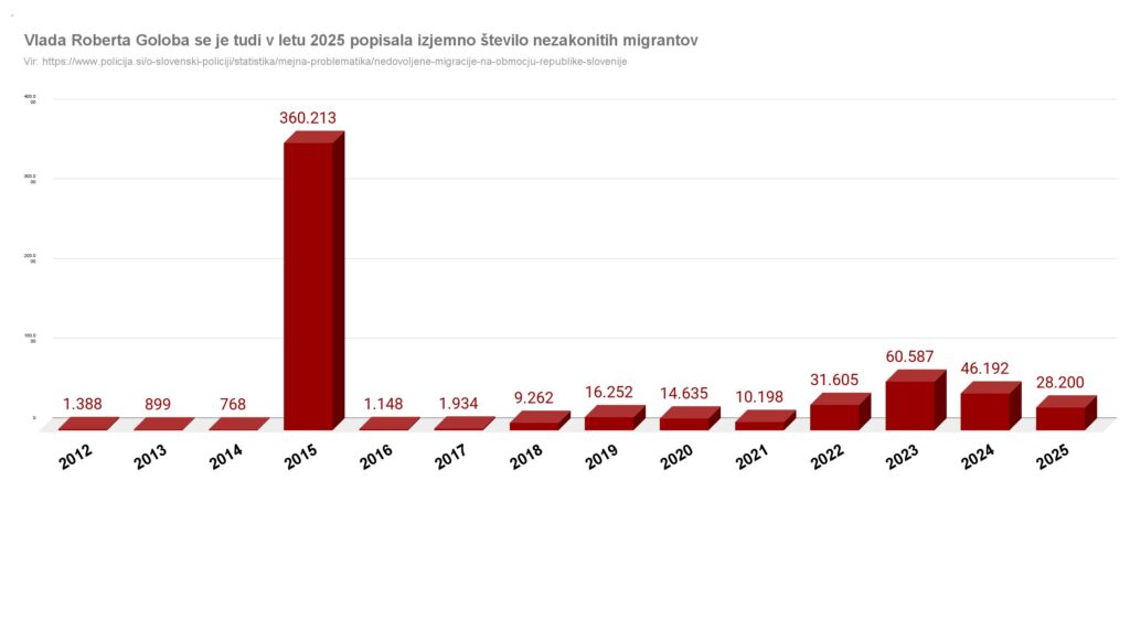 Policija je lani po nezakonitem prečkanju meje popisala 28.200 migrantov, leto prej jih je bilo 46.217. Zmanjšanje je v največjem delu posledica upada migracij iz Sirije iz 15.060 predlani na lani vsega 1.491 lani. Število se je zmanjšalo za več kot desetkrat. To je predvsem posledica padca diktatorja Bašarja al Asada, ki sta ga na oblasti nasilno vzdrževala Rusija in Iran. Za režima teh dveh držav je znano, da spodbujata migracije proti Evropi, da bi jo destabilizirali. Na letni ravni smo bili v času vlade Roberta Goloba priča precejšnjemu porastu števila migrantov, ki se je začelo nižati, podobno dogajanje je značilno tudi za celotno Evropsko unijo, le da je pri nas bil vzpon po epidemiji covida večji.