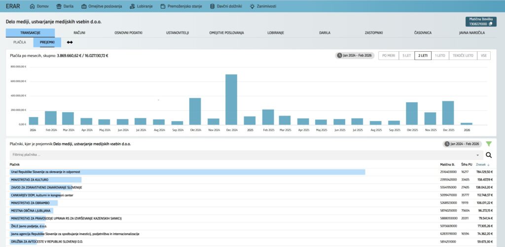 Pomembna prvina v zgodbi je, da Delo, ki ga je Kolektor Stojana Petriča kupil za manj kot osem milijonov z denarjem vlada močno zaliva. Samo v zadnjih dveh letih je Delo mediji, ki ga vodi Dejan Novaković, od državnih ustanov prejel skoraj štiri milijone, največ iz sklada za okrevanje in odpornost, kaže aplikacija Erar KPK: