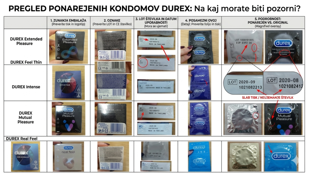 “Varnostne informacije glede ponaredkov moških kondomov Durex