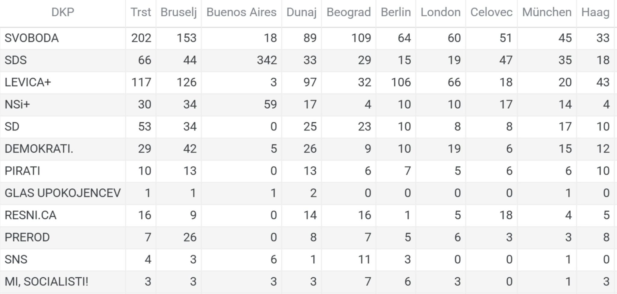 Zadnji glasovi: Svoboda je zmagala v Bruslju in Beogradu, SDS v Buenos Airesu in Torontu, Levica v Berlinu in Londonu