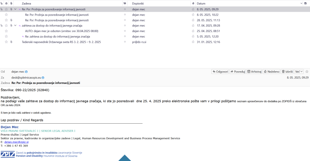Mojo prošnjo, da bi predstavili podatke za lani, so na ZPIZ zavrnili, ker jih uradno, kot so mi sporočili, še nimajo. Tako so to pojasnili: “Za leto 2025 bodo podatki na voljo šele, ko bodo uradno potrjeni s strani Ministrstva za delo, družino, socialne zadeve in enake možnosti (praviloma najkasneje do konca meseca junija tekočega leta). Zahtevane dokumentacije pri organu tako ni in se torej podatki ne nahajajo v materializirani obliki – zahtevana informacija sploh (še) ne obstaja.” Na ta odgovor, da ZPIZ še nima podatkov, koliko so lani plačali z denarjem davkoplačevalcev Poličem, Makarovičevim in Vilfanom, bi se lahko pritožil v 21 dneh informacijski pooblaščenki. Informacijska pooblaščenka je v preteklosti dosegla, da so vsi ti podatki javnosti sploh dostopni. Oblast jih je prej javnosti prikrivala. Pred referendumom o privilegijih za kulturnike so mi posredovanje podatkov o teh privilegirancih zavračali iz ministrstva za kulturo Aste Vrečko in iz ZPIZ. Usmerjali so me drug na drugega. Informacijska pooblaščenka pa je to presekala in zahtevala posredovanje podatkov javnosti. In tako smo prvič izvedeli, kdo vse dobiva in koliko.